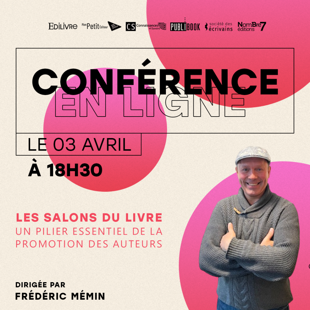 Le mercredi 3 avril à 18h30, assistez à la conférence en ligne dirigée par Frédéric Mémin. Il s’exprimera sur son expérience d’écrivain en salon, l’occasion de vous partager des conseils, des anecdotes et les réalités de ces manifestations littéraires.